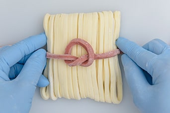 麺が切れないように1つ1つ⼿作業で包装して完成です。