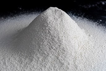 材料を混ぜ合わせる前に⼩⻨粉を⼿作業で振るいにかけます。