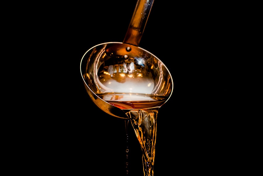 お店で提供するうどんの出汁は、⾹川県伊吹島産のイリコ、オリーブの葉を⼊れた湯で煮上げた⾹川県産品のオリーブイリコ、そこに鰹節と昆布を贅沢にブレンドし、⼀晩かけてじっくりと⽔出ししてています。厳選した素材は⾹川県⾼松市の⽼舗乾物店「丸⼀倉庫」から、はやし家製麺所のうどん⽤に特注で仕⼊れています。瀬⼾内海の⾵味豊かな出汁に⾹川県⼩⾖島産の醤油を加えて仕上げています。